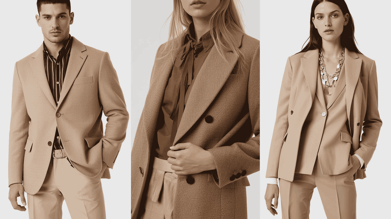 - For women: Pair beige tailored pants with your blazer for a sleek, editorial look. Add a silk camisole in ivory or blush and heels to elongate your figure.