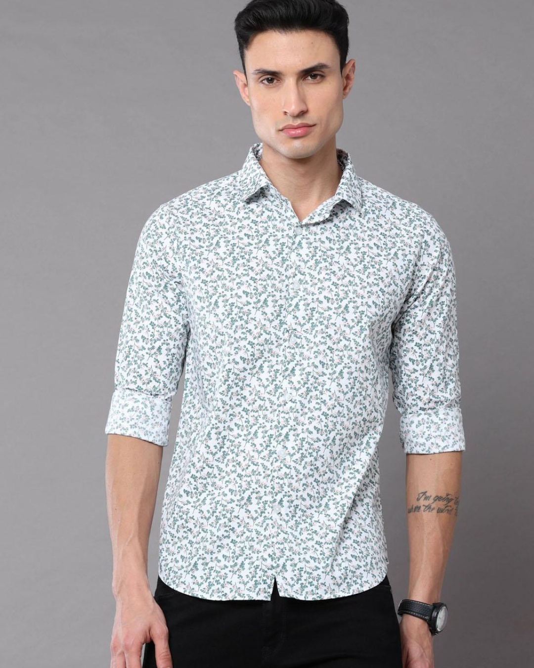Men's White Tiny Flower Printed Slim Fit Shirt