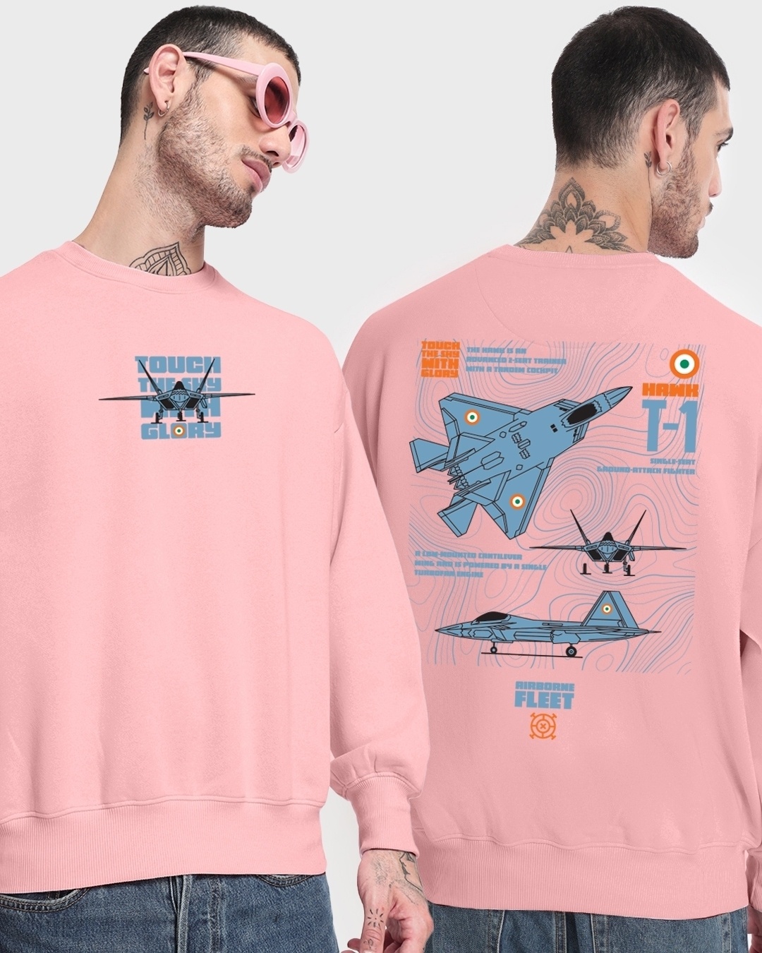 Men's Pink Airborne Fleet Graphic Printed Oversized Sweatshirt