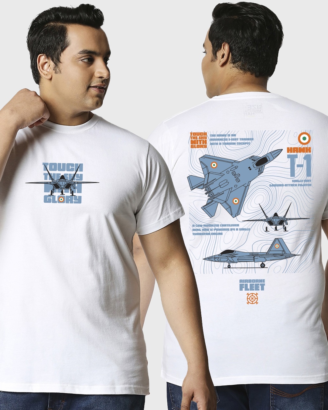 Men's White Airborne Fleet Graphic Printed Oversized Plus Size T-shirt