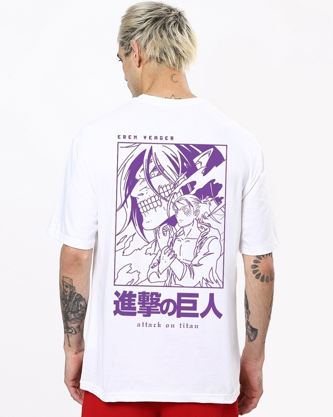 Men's White AOT Founding Titan Graphic Printed Oversized T-shirt