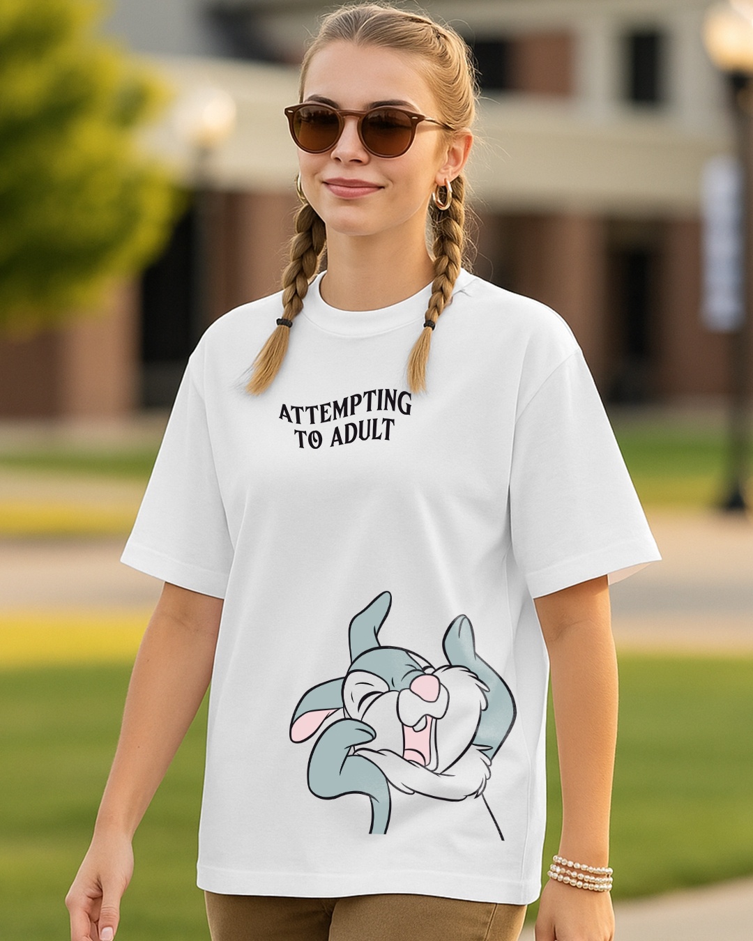 Women's White Attempting To Adult Graphic Printed Oversized T-shirt