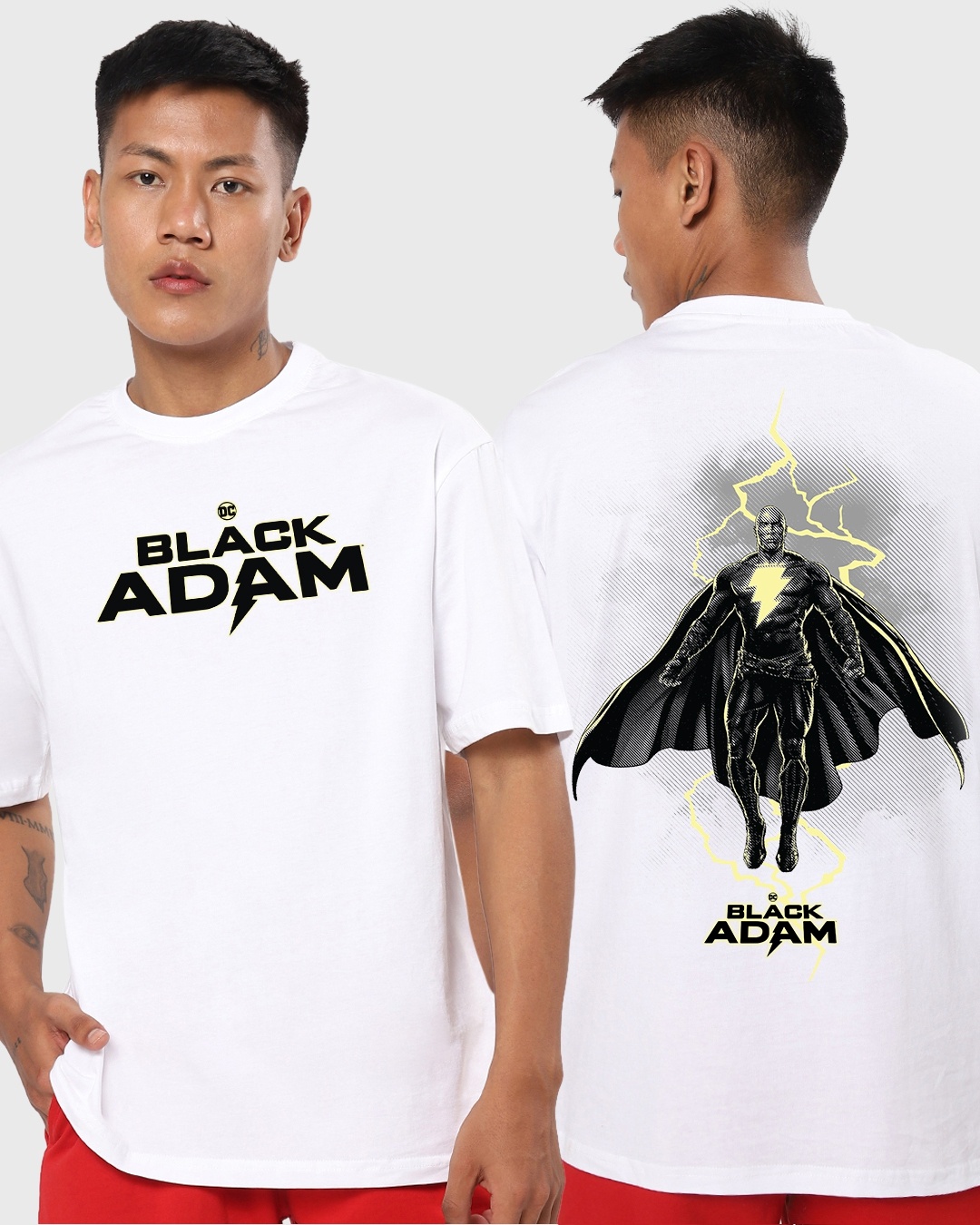 Men's White Black Adam Graphic Printed Oversized T-shirt