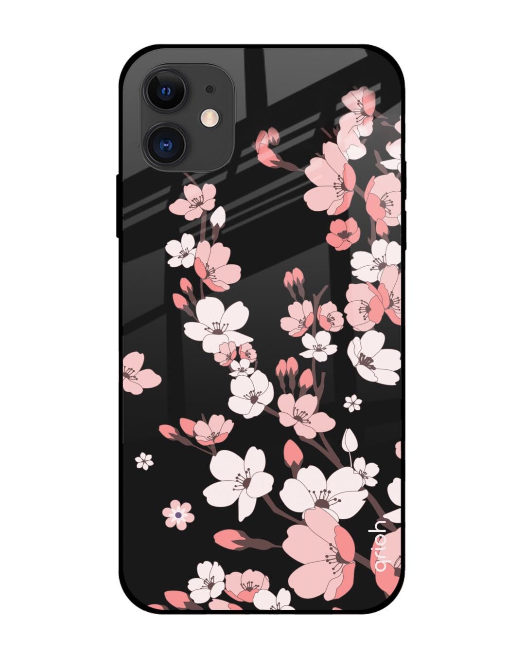 Black Cherry Blossom Premium Glass Case for Apple iPhone 12 mini (Shock Proof, Scratch Resistant)