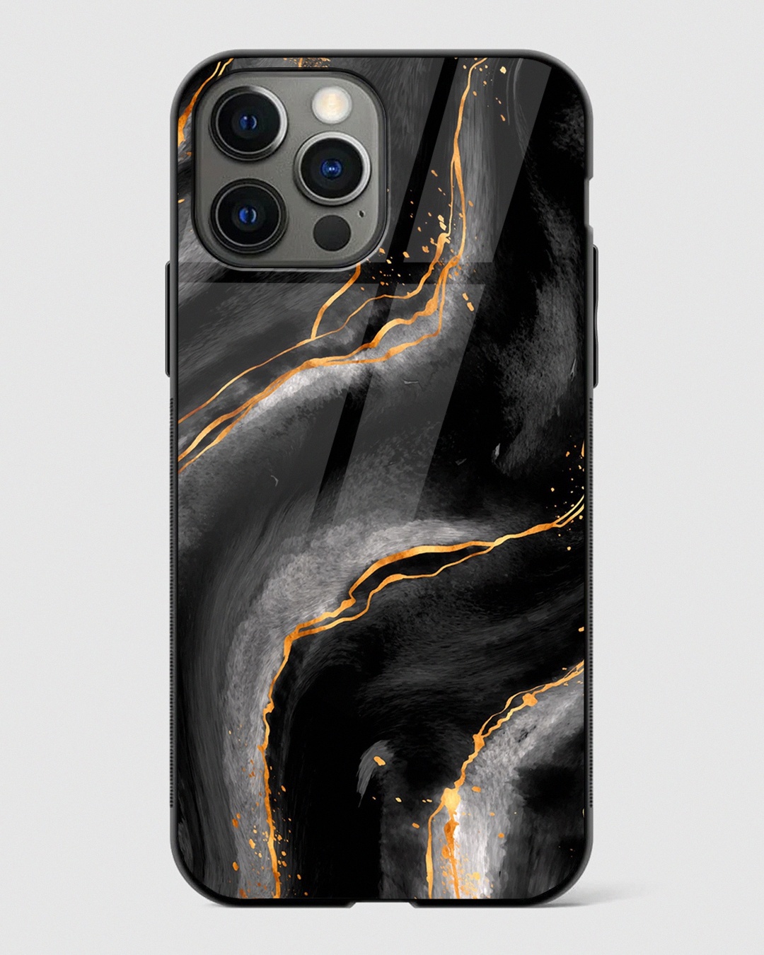Black Golden Marble Premium Glass Case for Apple iPhone 15 Pro Max
