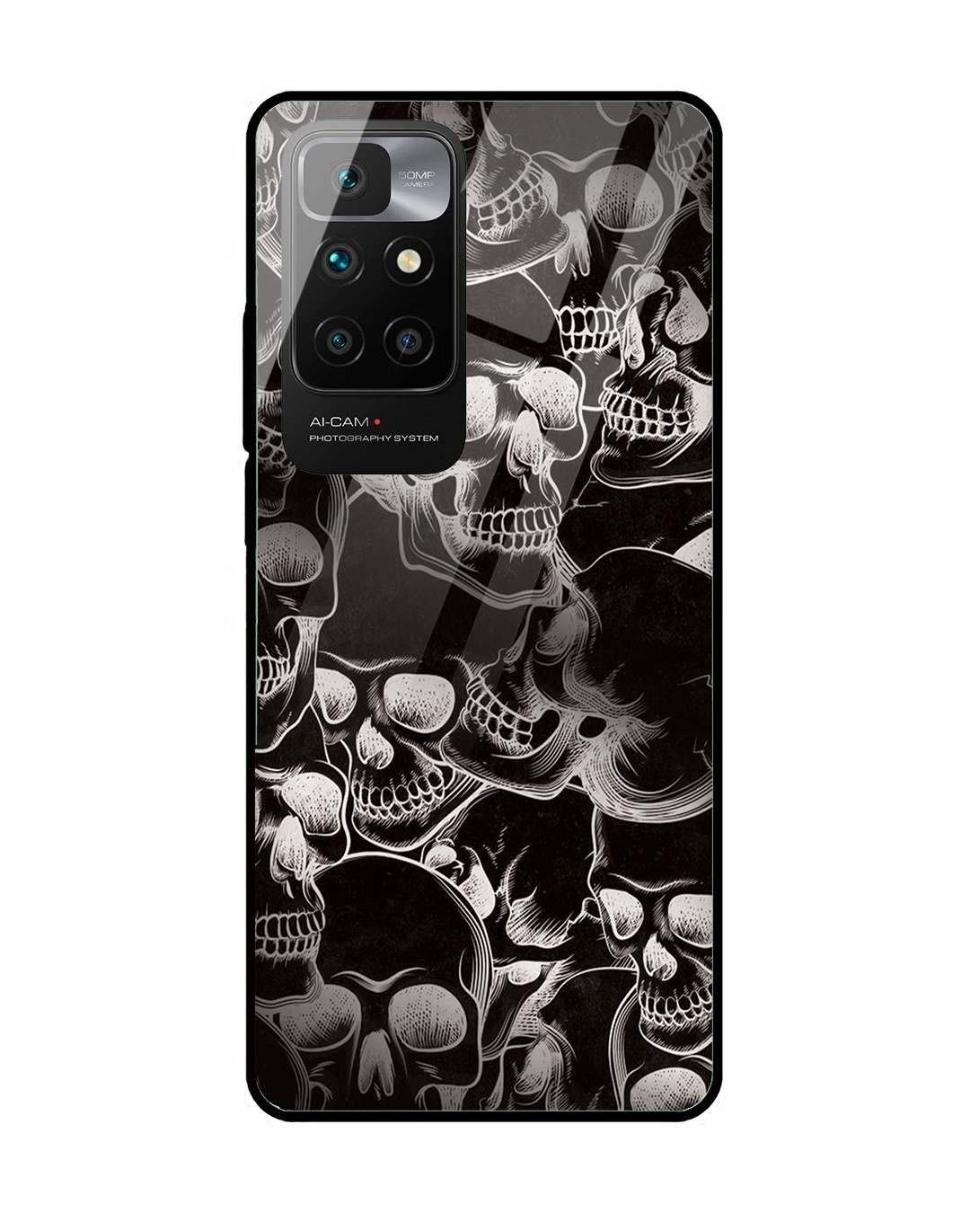 Black Skulls Premium Glass Cover for Xiaomi Redmi 10 Prime