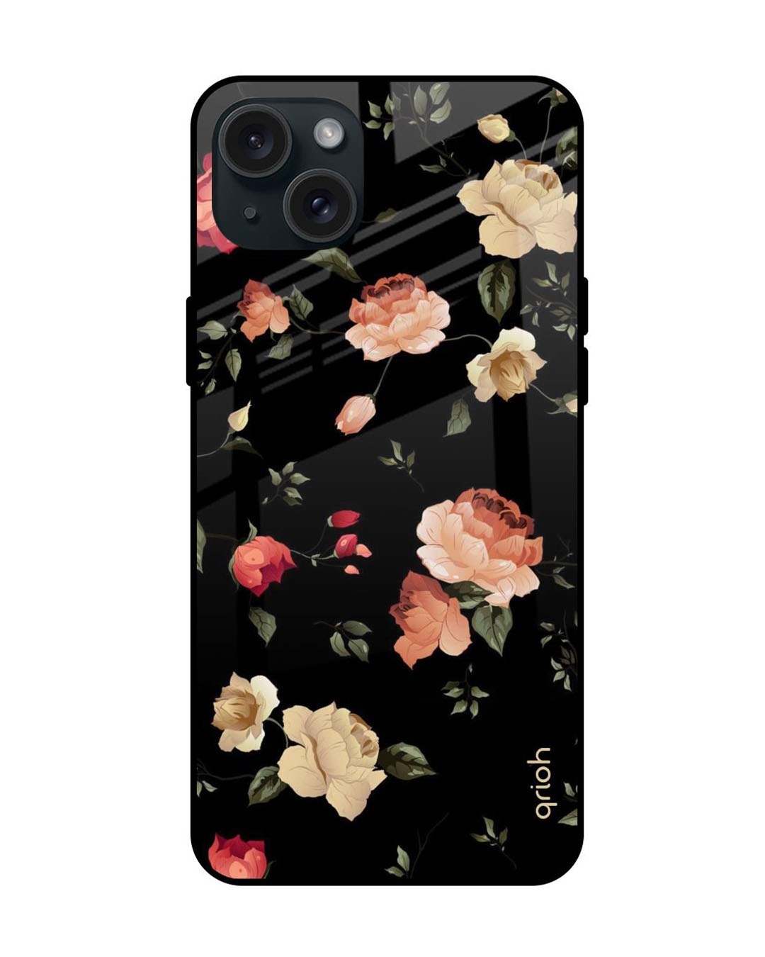 Black Spring Floral Premium Glass Case for Apple iPhone 15 Plus (Shock Proof, Scratch Resistant)