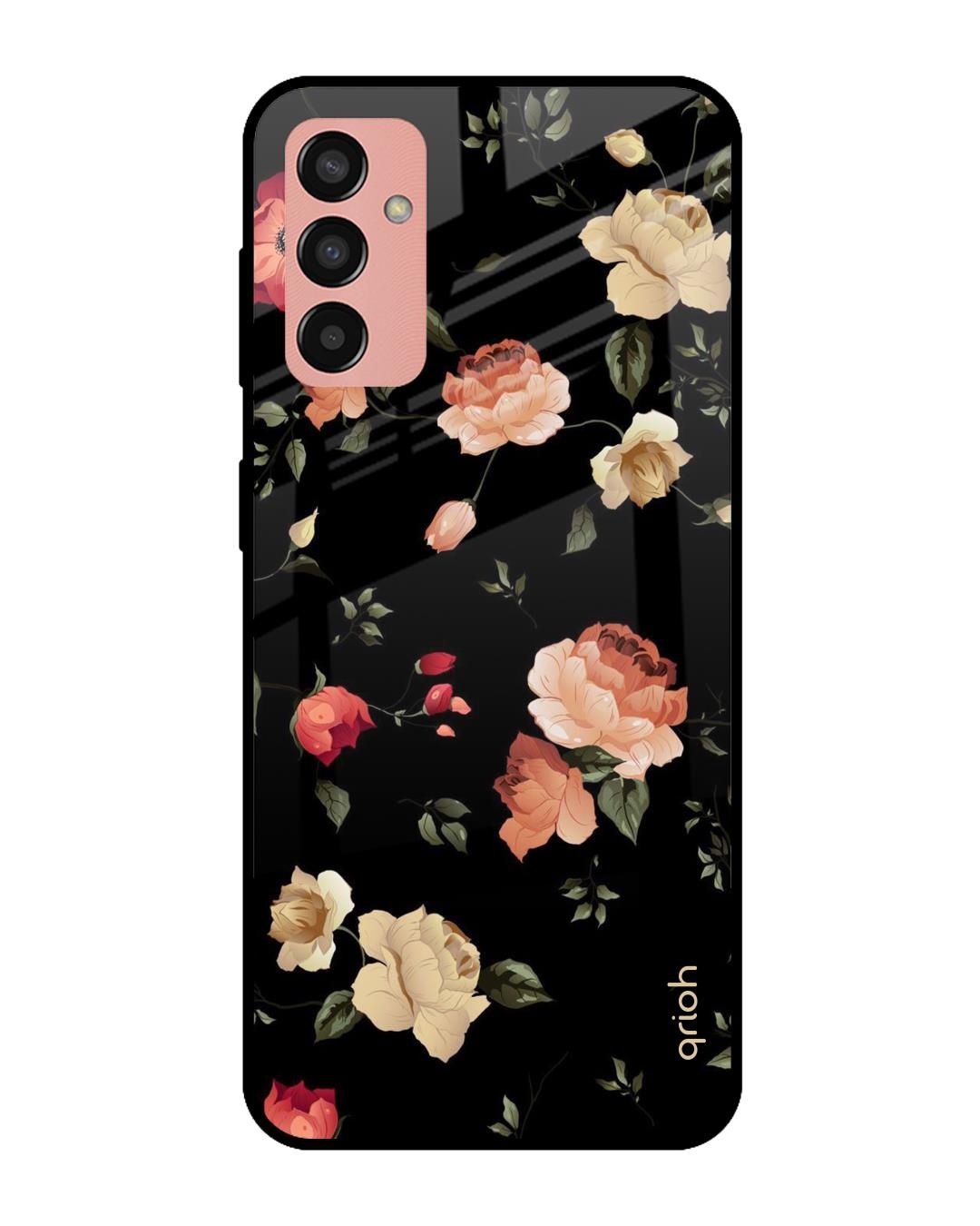 Black Spring Floral Printed Premium Glass Cover for Samsung Galaxy M13