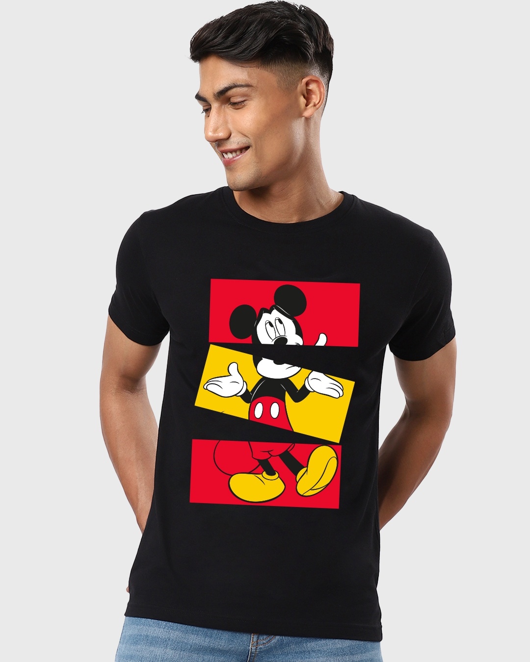 Men's Black Blocked Mickey Graphic Printed T-shirt