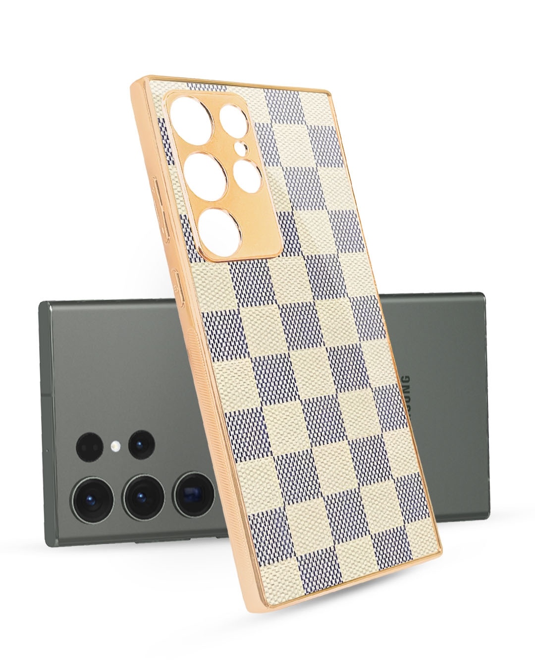Blue Block Copper Metallic Gold Premium Glass Case for Samsung Galaxy S23 Ultra 5G