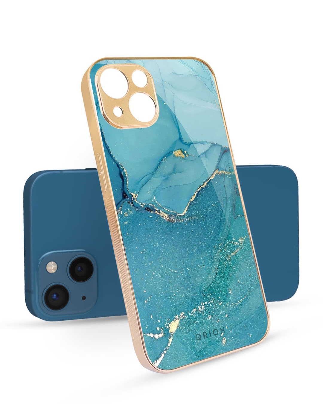 Blue Golden Glitter Copper Metallic Gold Premium Glass Case for Apple iPhone 13