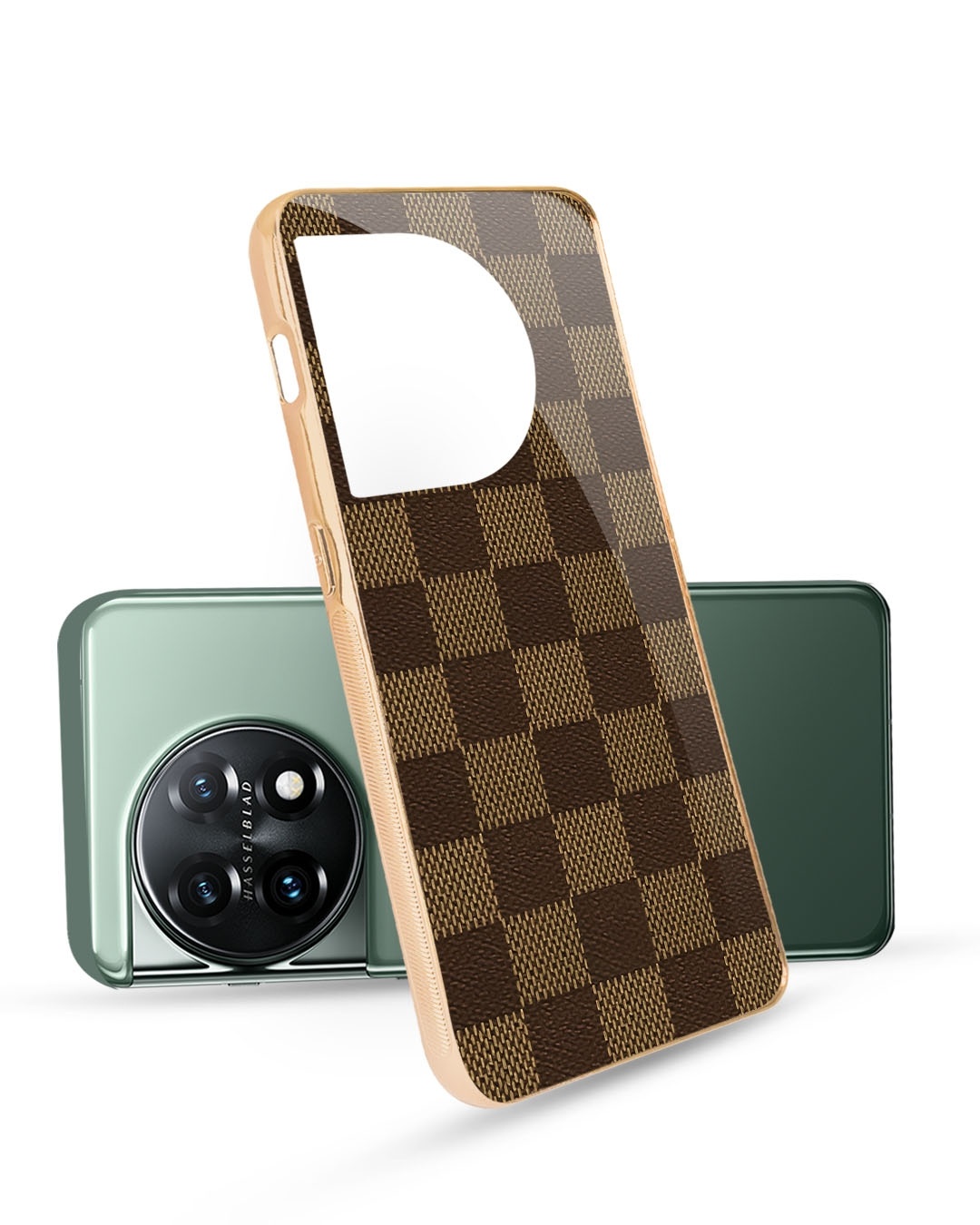 Brown Block Copper Metallic Gold Premium Glass Case for Oneplus 11 5G