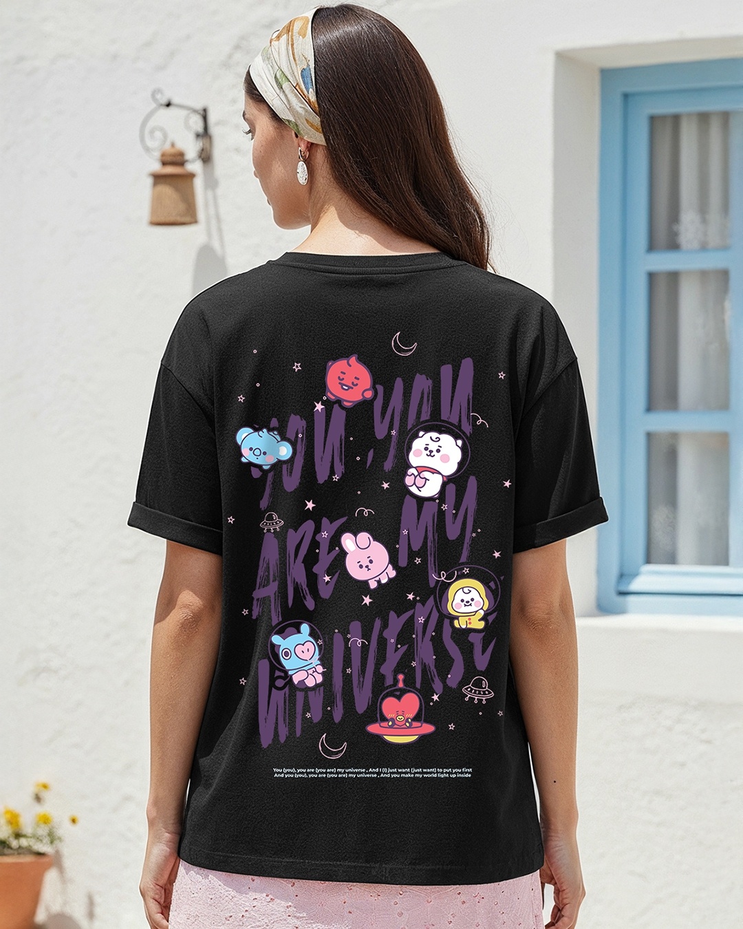 Women's Black BTS My Universe Graphic Printed Boyfriend T-shirt