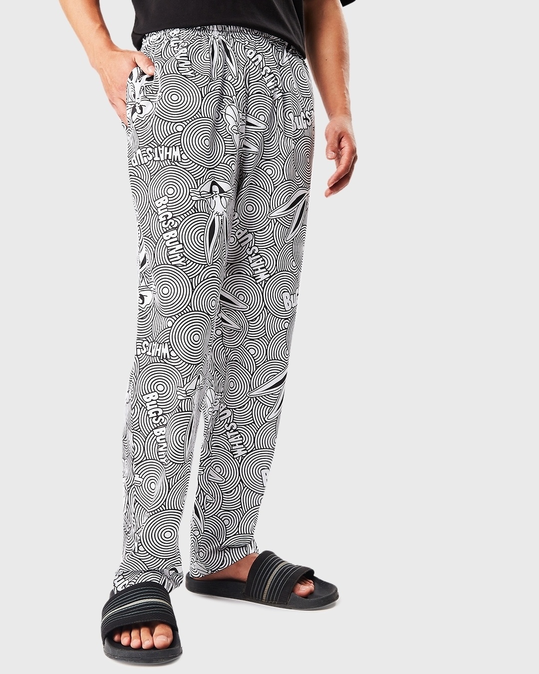 Men's White All Over Bugs Bunny Circles Printed Pyjamas