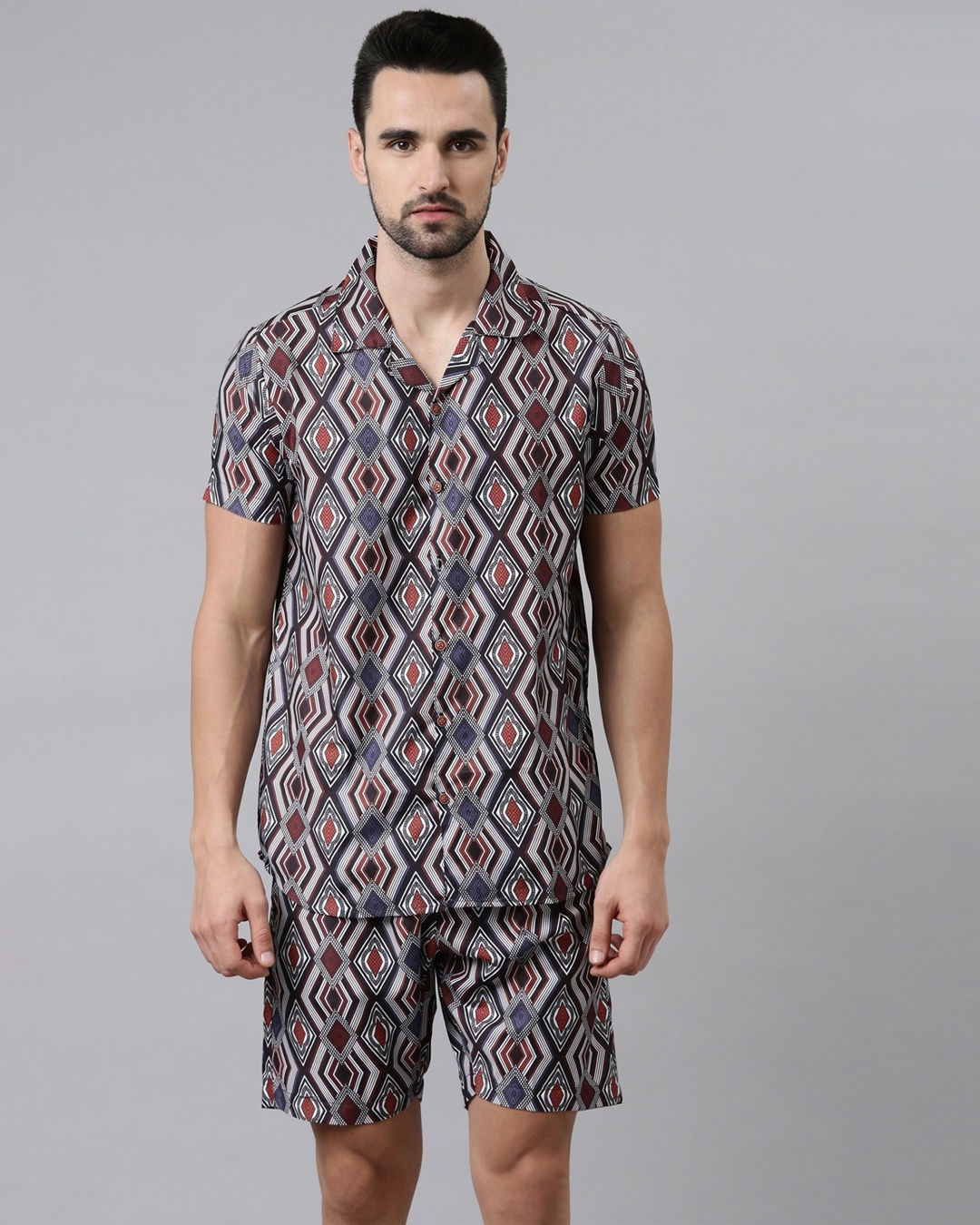 Men Black Geometric Printed Co-ord Set