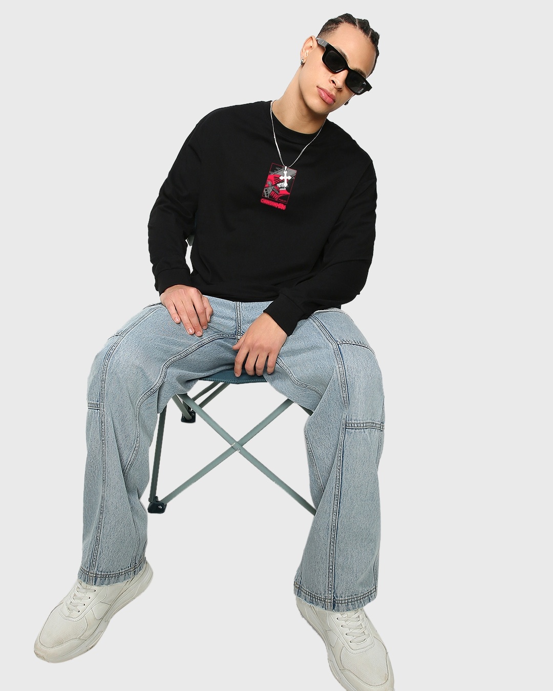 Men's Black Chainsaw Man Graphic Printed Oversized T-shirt