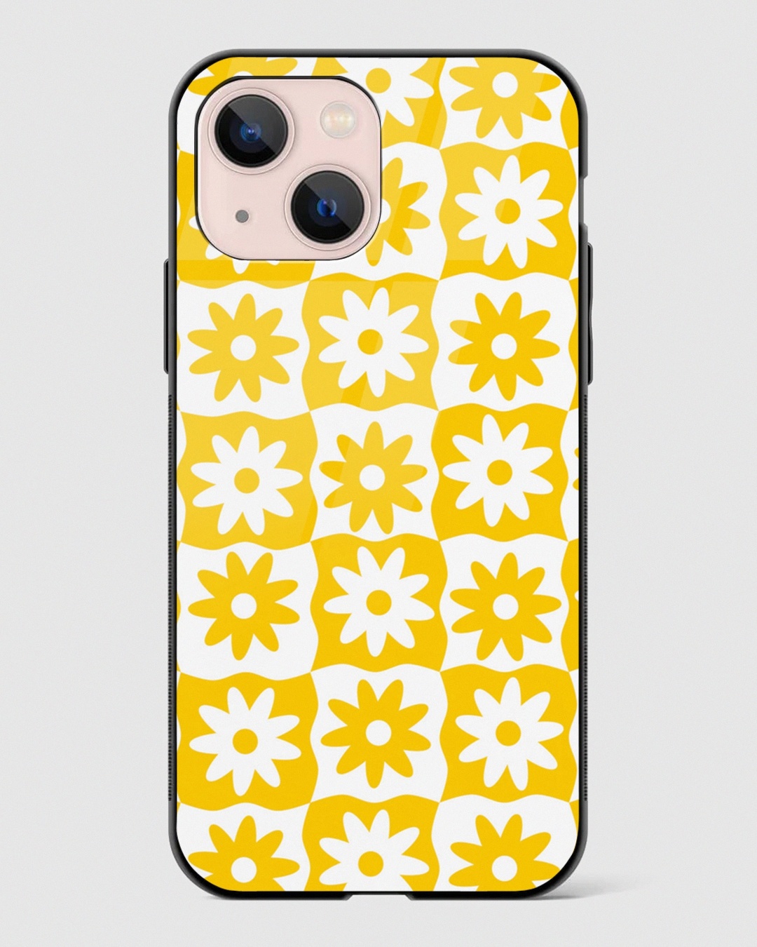 Checkered Yellow Daisies Premium Glass Case for Apple iPhone 15