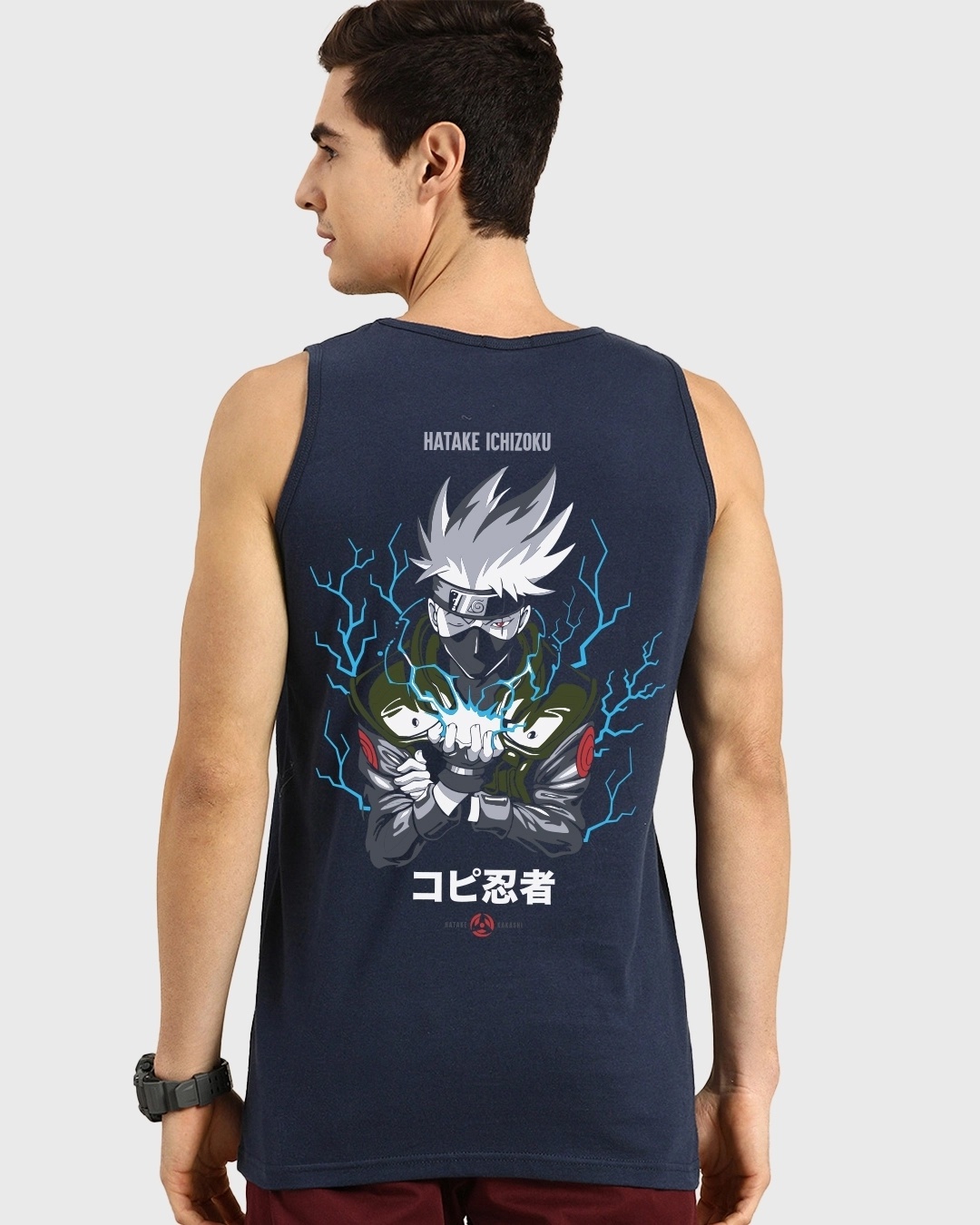 Men's Blue Chidori Kakashi Graphic Printed Vest