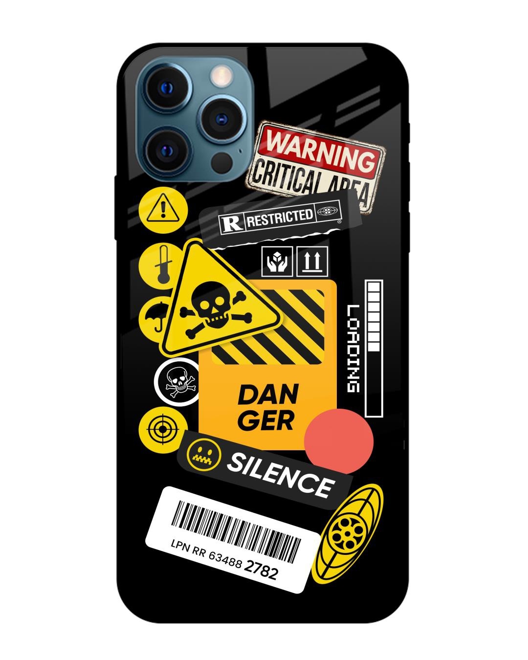Danger Signs Premium Glass Case for Apple iPhone 12 Pro Max (Shock Proof, Scratch Resistant)