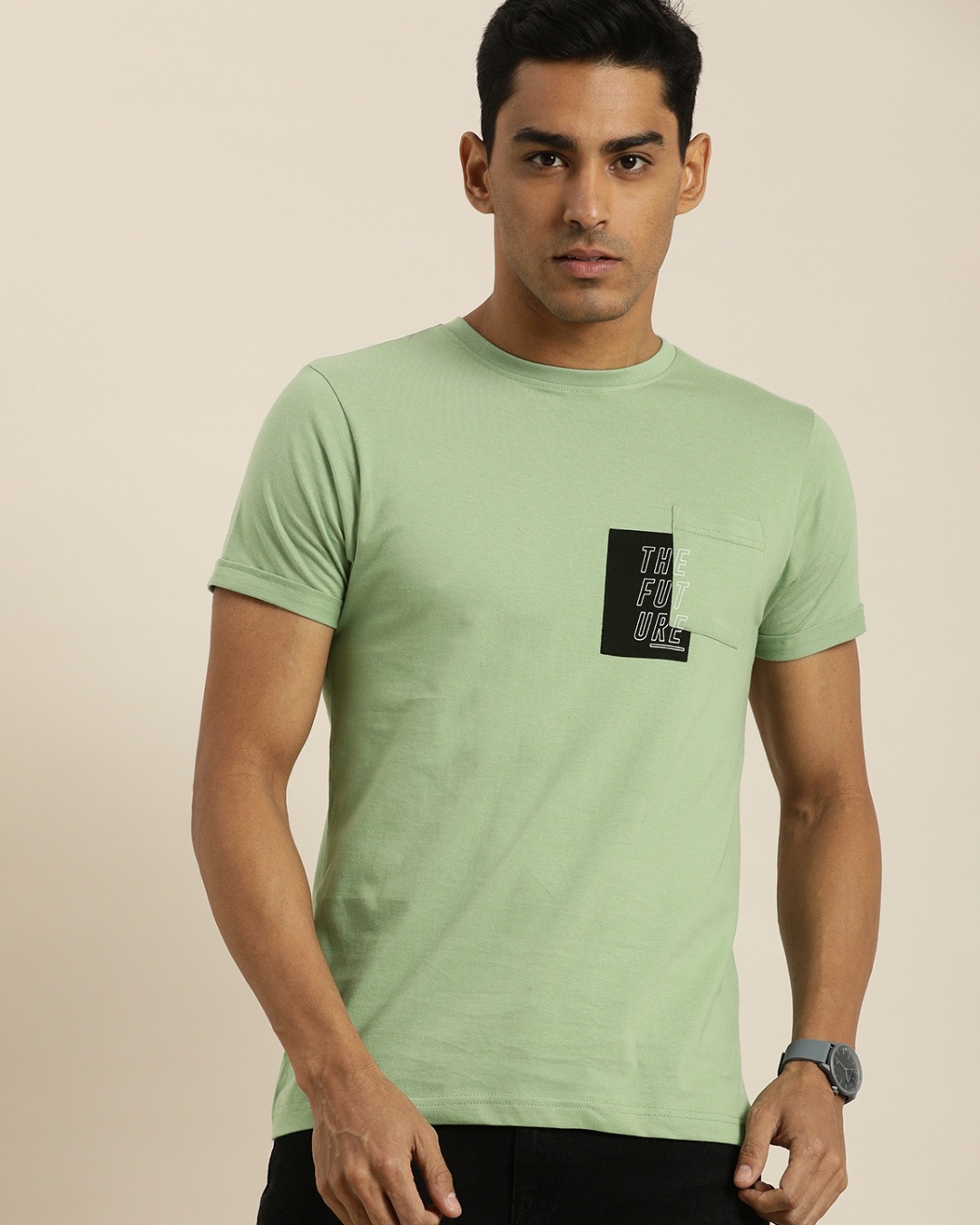 Men's Green Color Block Slim Fit T-shirt