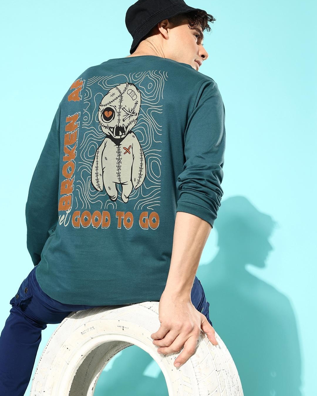 Men's Green Graphic Printed Oversized T-shirt
