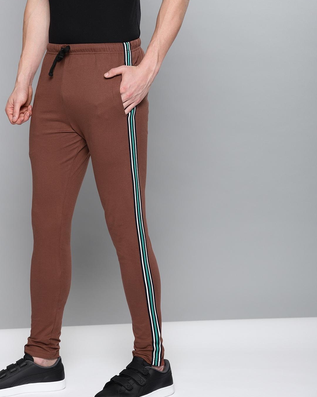 Men's Brown Striped Track Pants