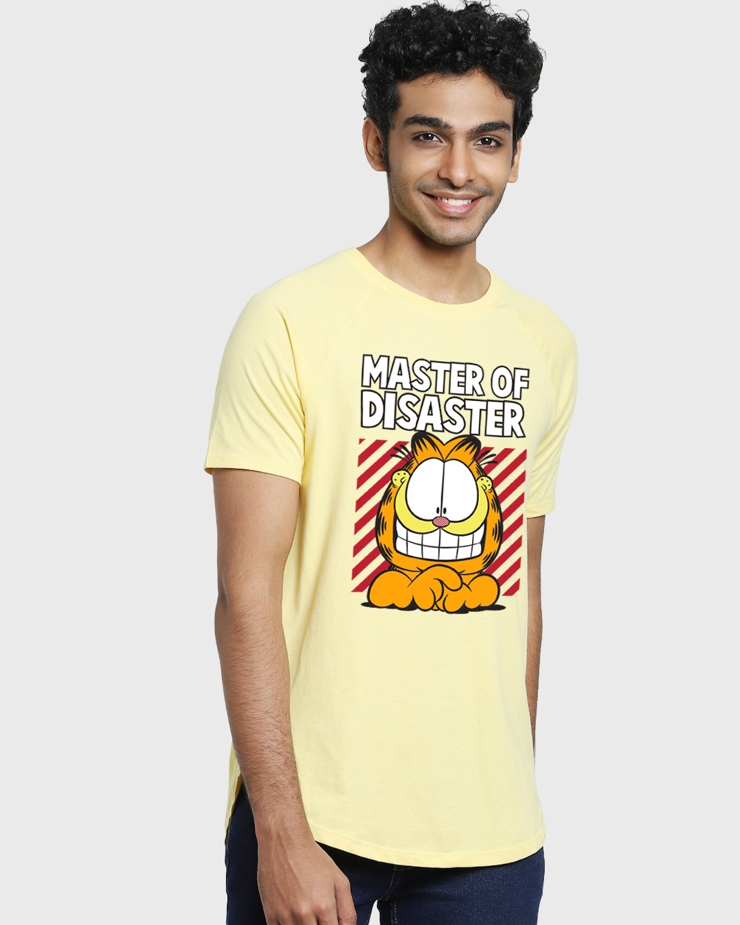Men's Yellow Disaster Garfield Graphic Printed Apple Cut T-shirt