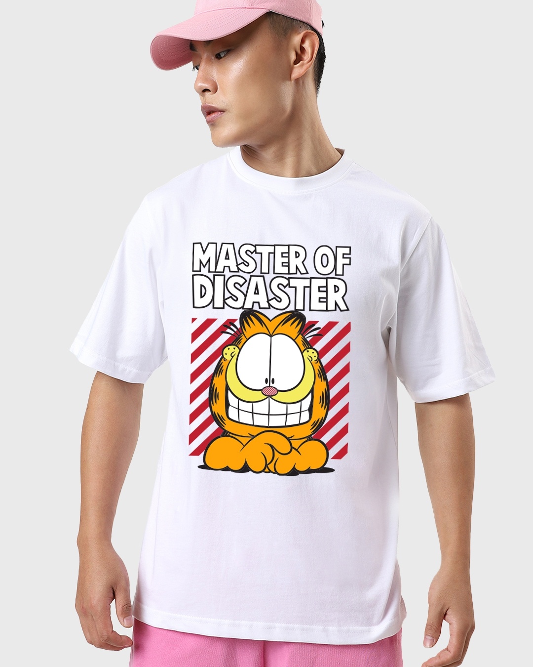 Men's White Disaster Garfield Graphic Printed Oversized T-shirt