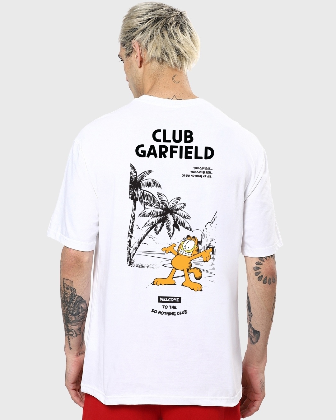 Men's White Do Nothing Club Graphic Printed Oversized T-shirt