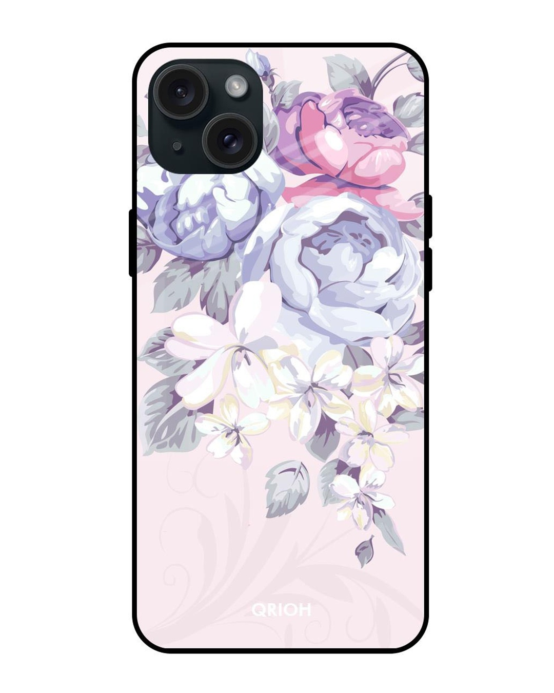 Elegant Floral Premium Glass Case for Apple iPhone 15 Plus (Shock Proof, Scratch Resistant)