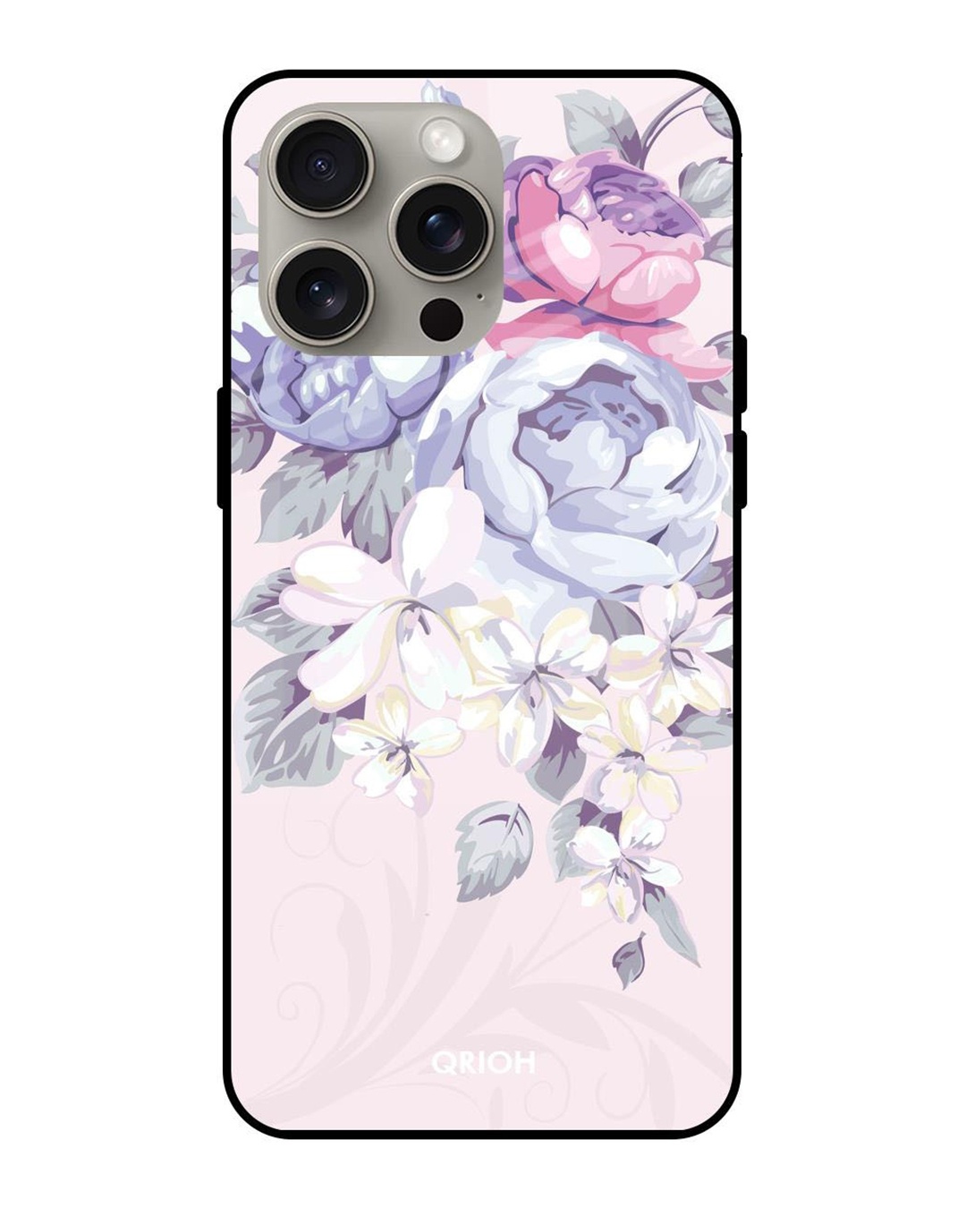 Elegant Floral Premium Glass Case for Apple iPhone 15 Pro Max (Shock Proof, Scratch Resistant)
