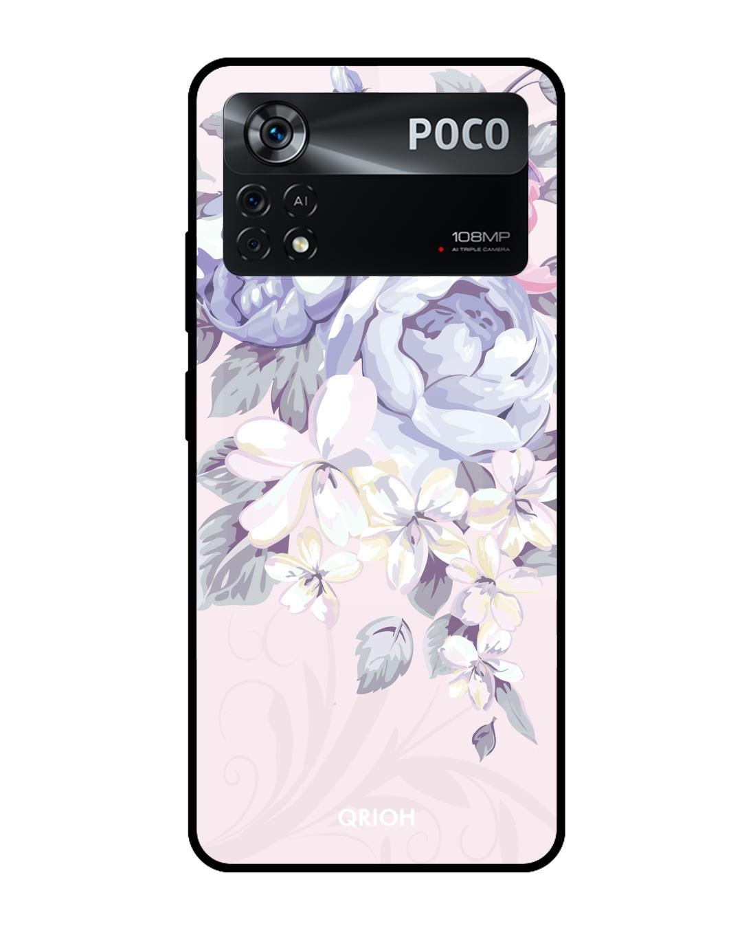 Elegant Floral Printed Premium Glass Cover for Poco X4 Pro 5G (Shockproof, Light Weight)