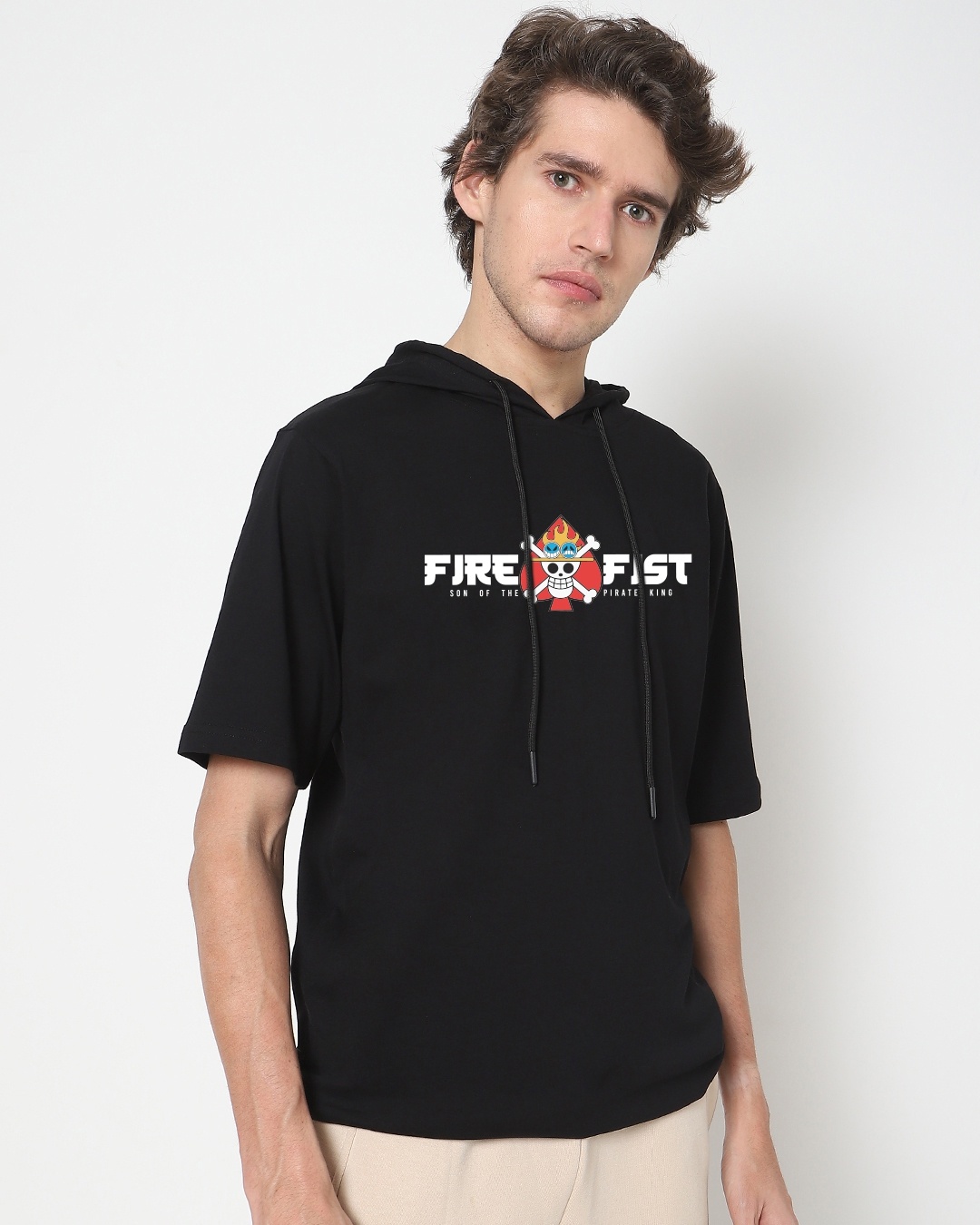 Men's Black Fire Fist Typography Hoodie T-shirt