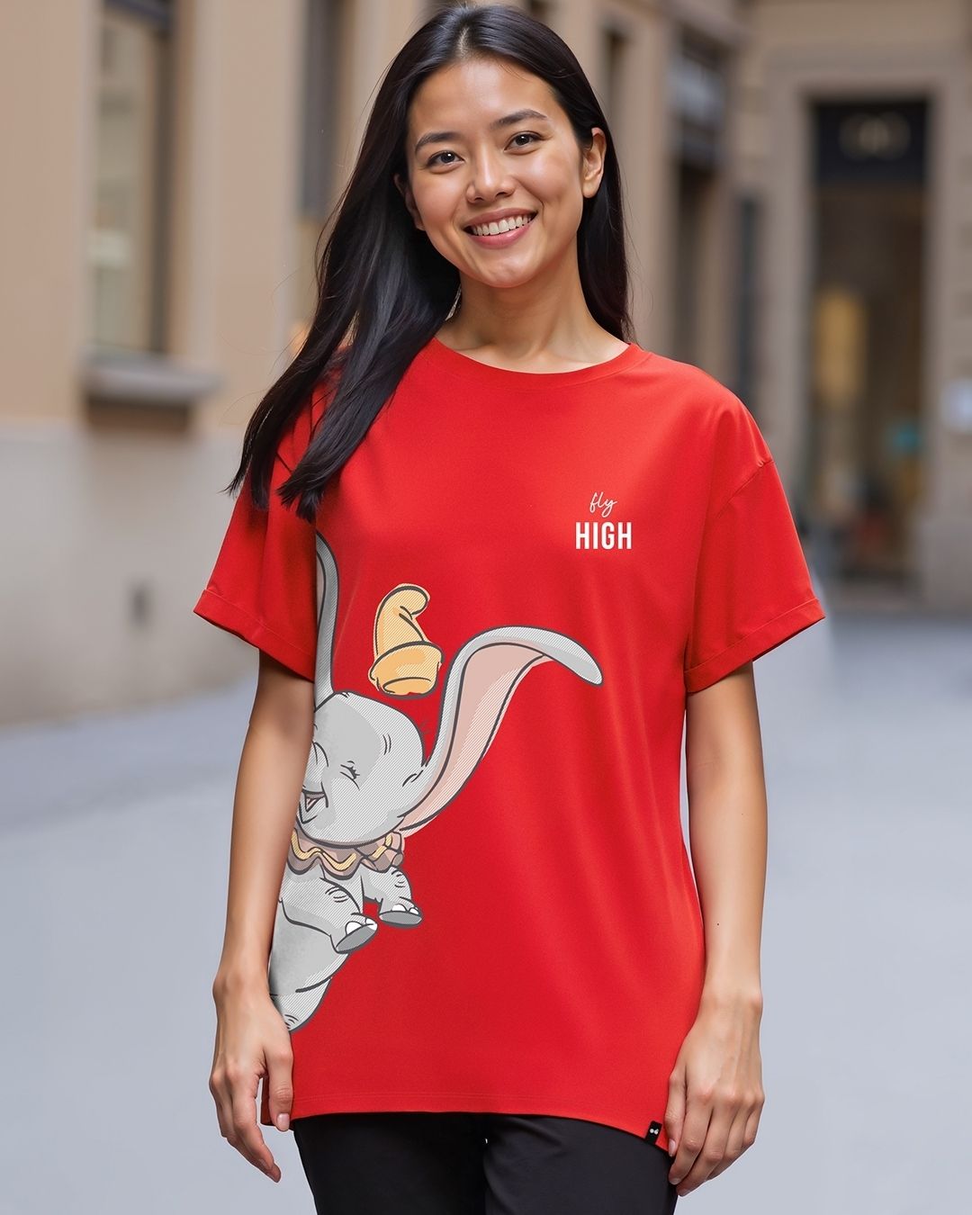 Women's Red Fly High Graphic Printed Boyfriend T-shirt