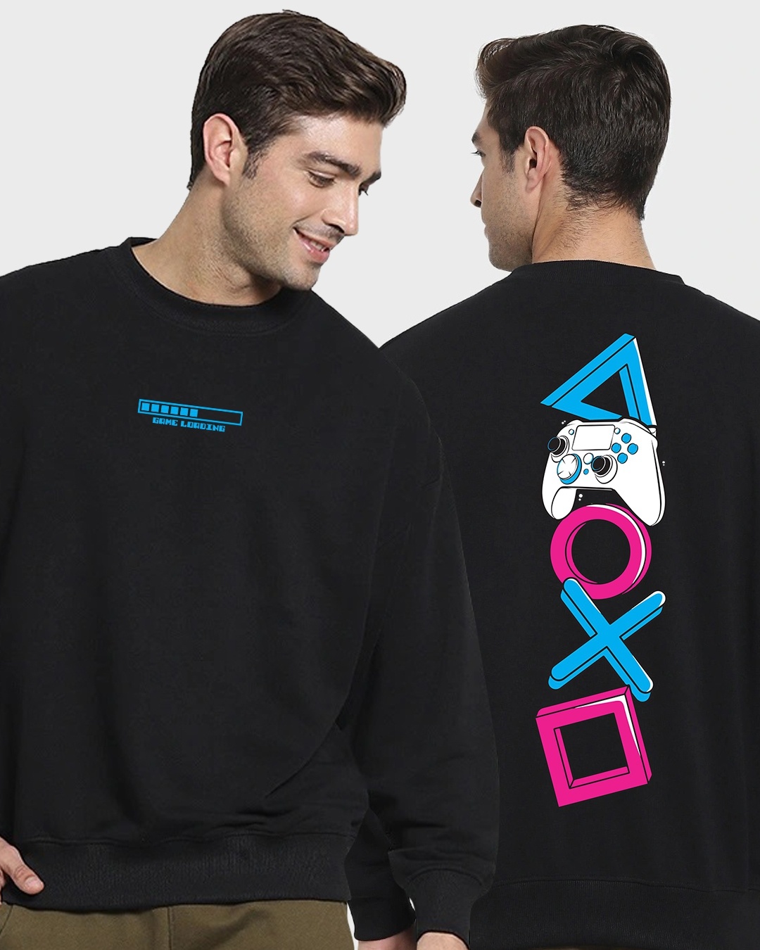 Men's Black Gamer Loading Graphic Printed Oversized Sweatshirt