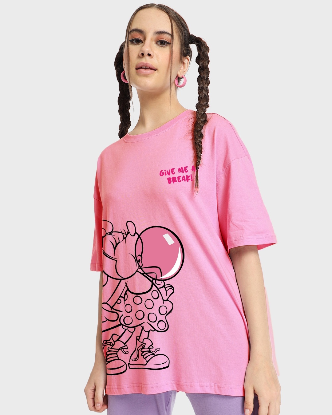 Women's Pink Give Me Break Graphic Printed Oversized T-shirt