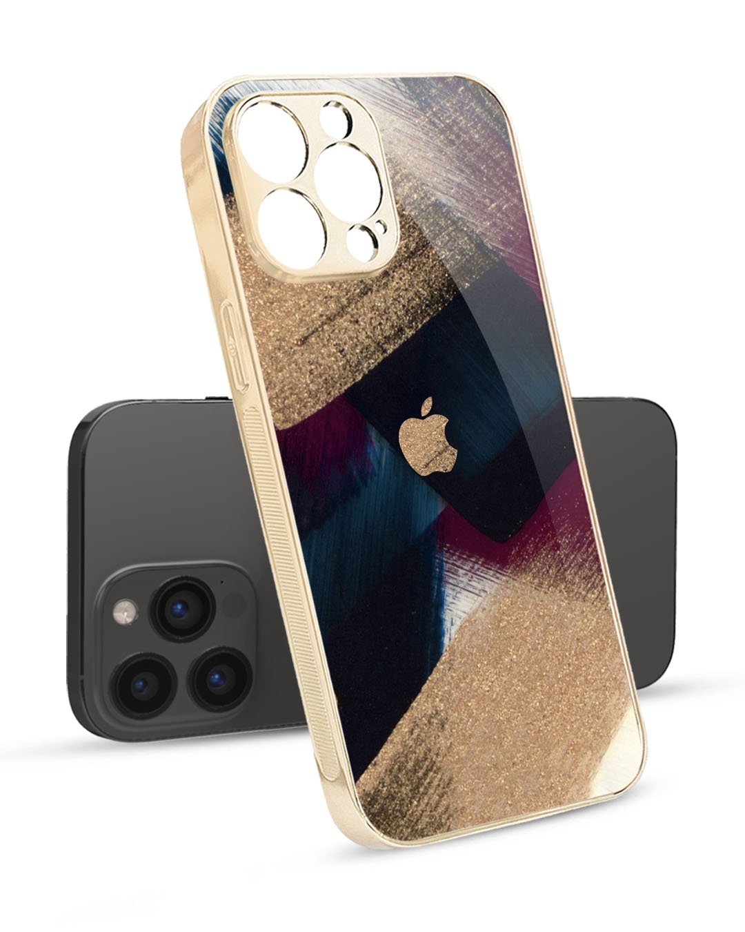 Glitter Stroke Gold Logo Metallic Gold Premium Glass Case for Apple iPhone 14 Pro max