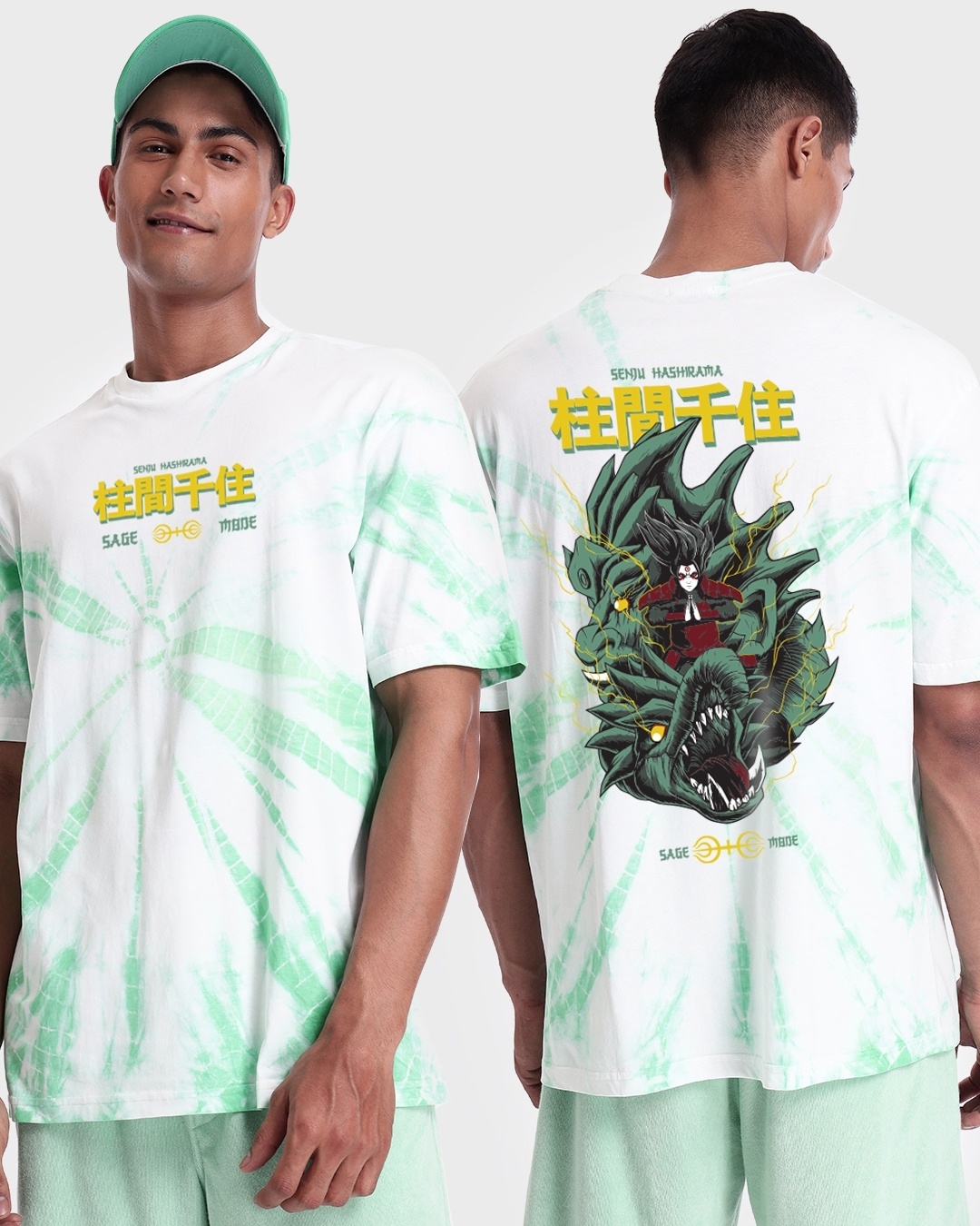 Men's White God Of All Shinobi Hashirama Senju Graphic Printed Oversized T-shirt
