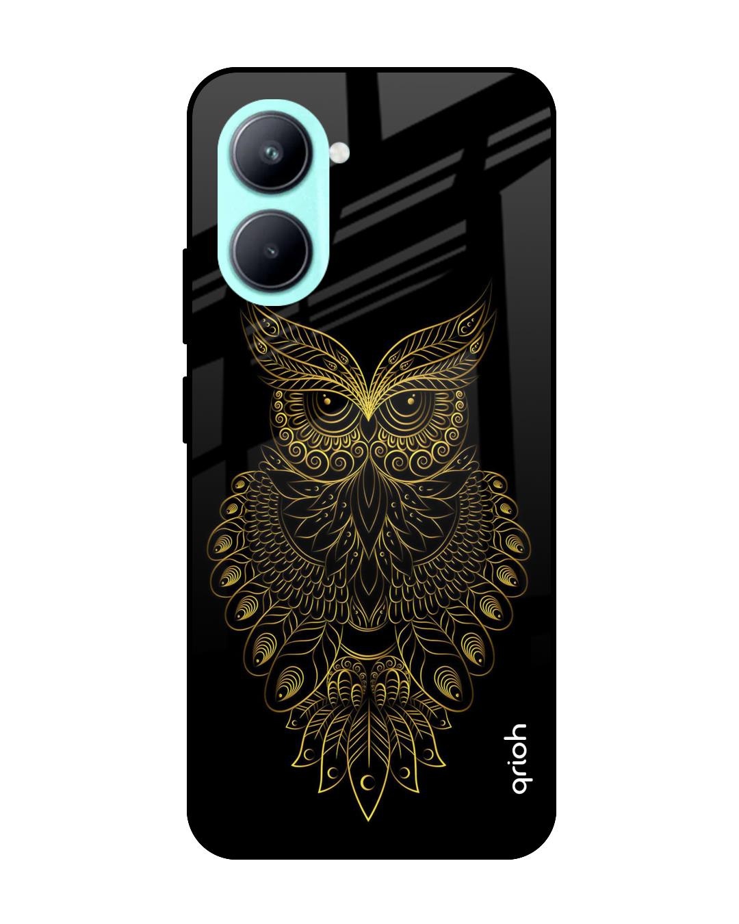 Golden Owl Printed Premium Glass case for Realme C33 (Shock Proof,Scratch Resistant)