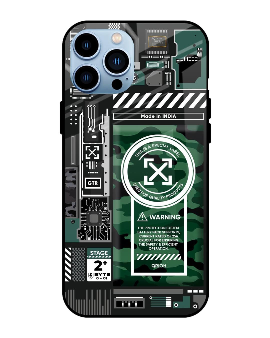 Green Camo Circuit Premium Glass Cover for Apple iPhone 13 Pro(Shock Proof, Scratch Resistant)