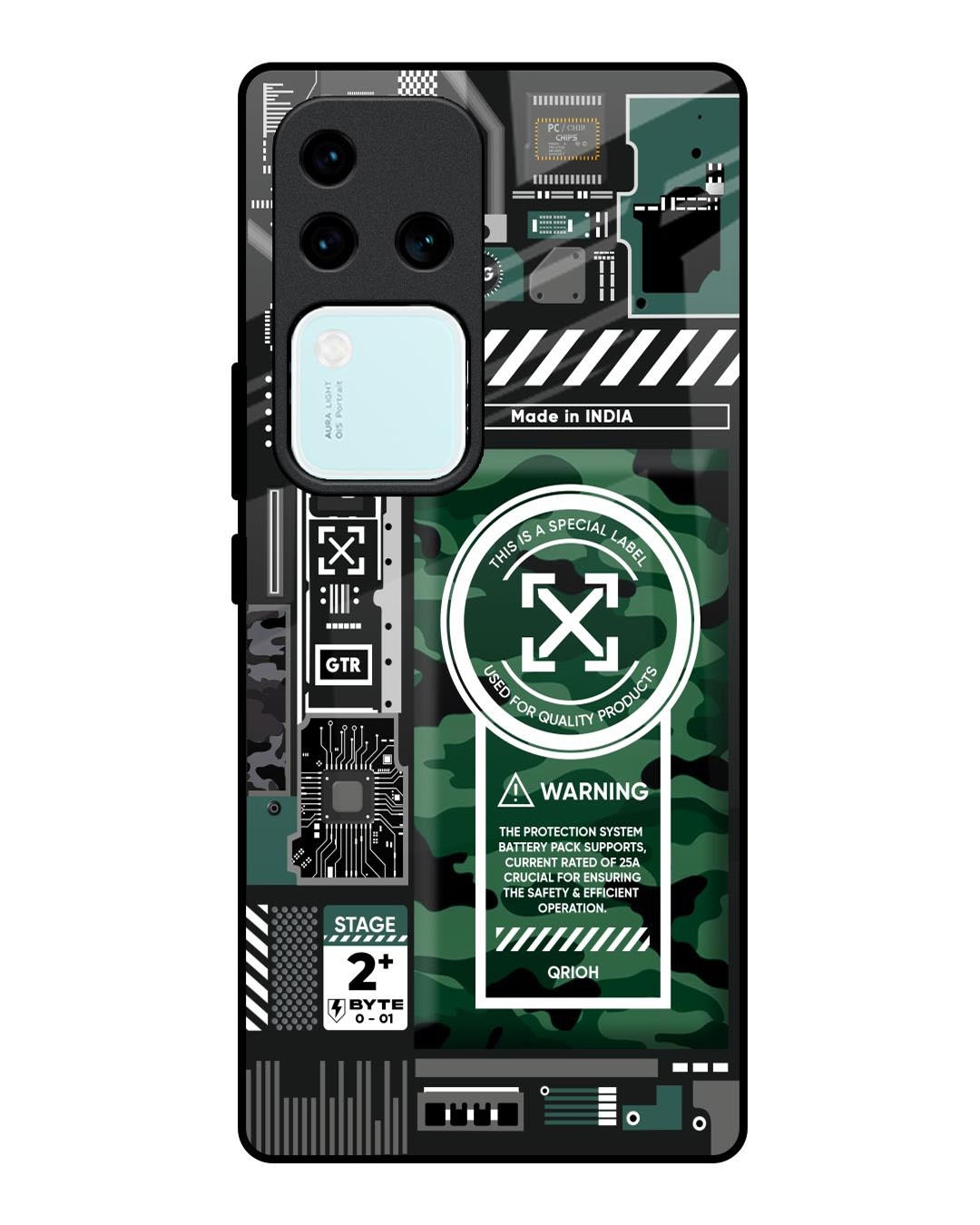 Green Camo Circuit Premium Glass Cover for Vivo V30 Pro 5G(Shock Proof, Scratch Resistant)