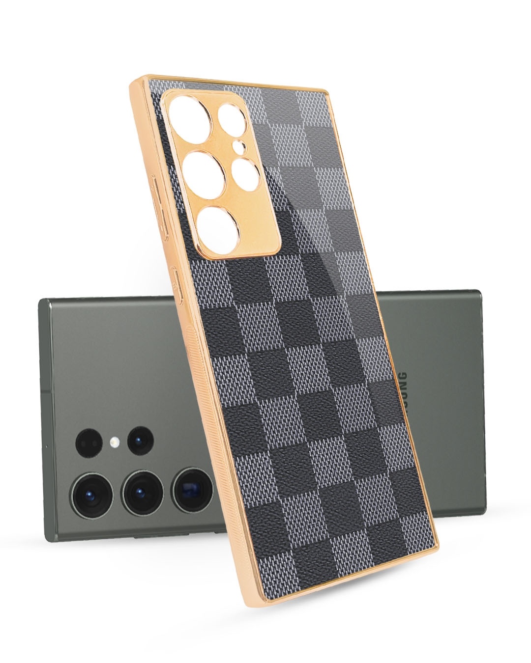 Grey Block Copper Metallic Gold Premium Glass Case for Samsung Galaxy S23 Ultra 5G