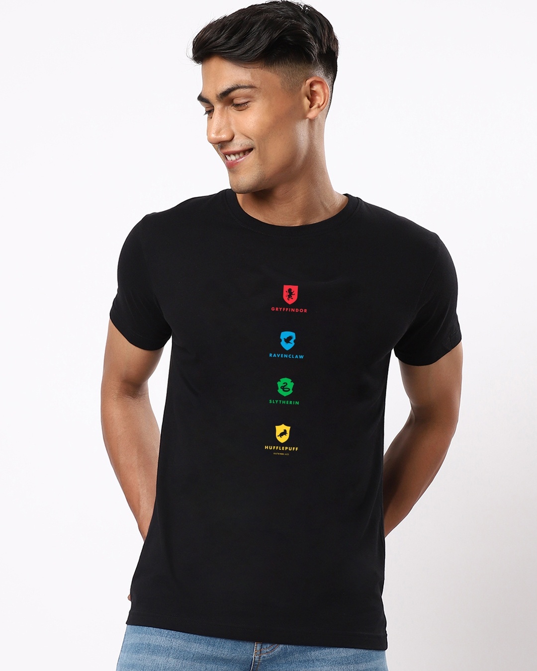 Men's Black House of Hogwarts Graphic Printed T-shirt