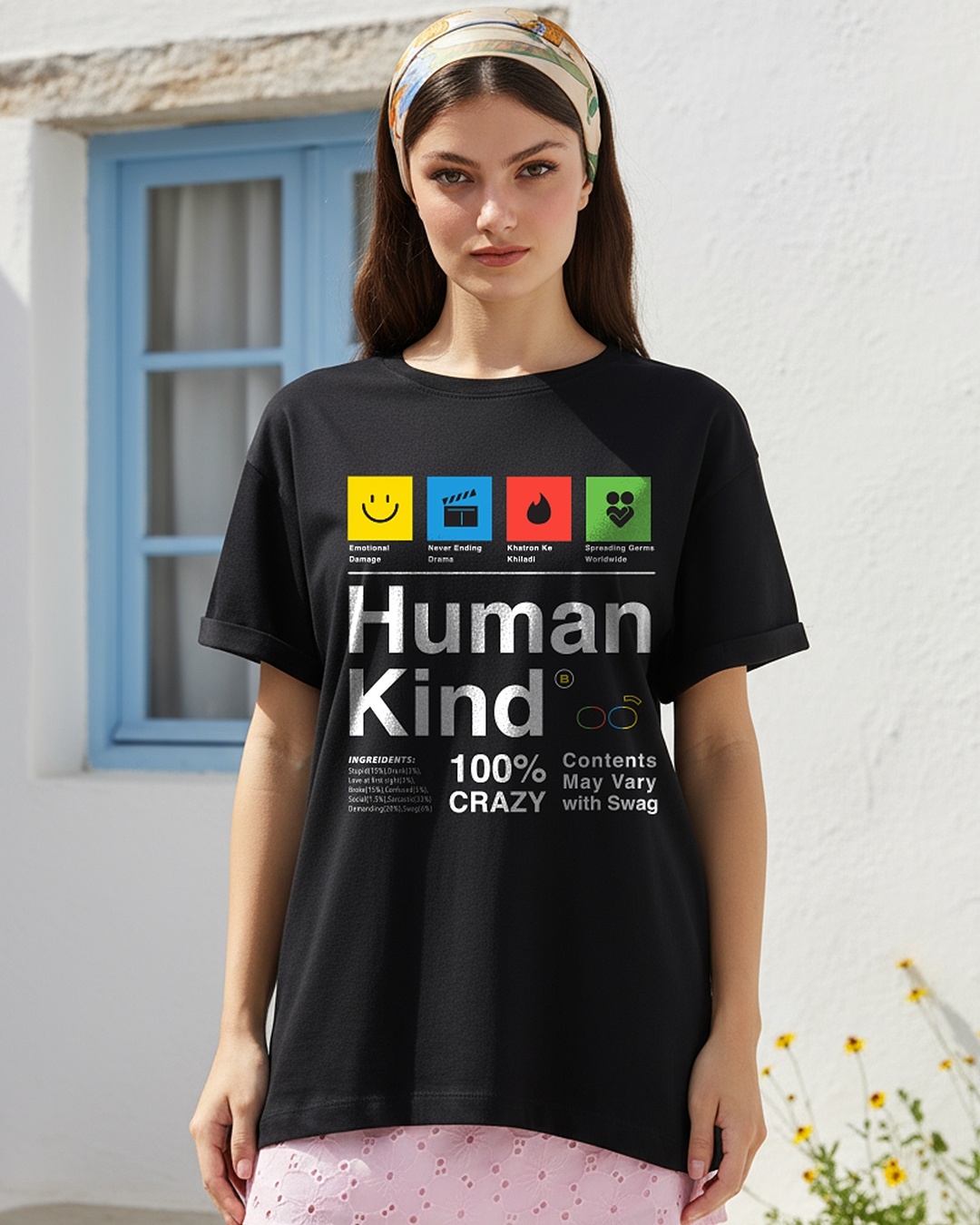 Women's Black Human Kind Typography Boyfriend T-shirt