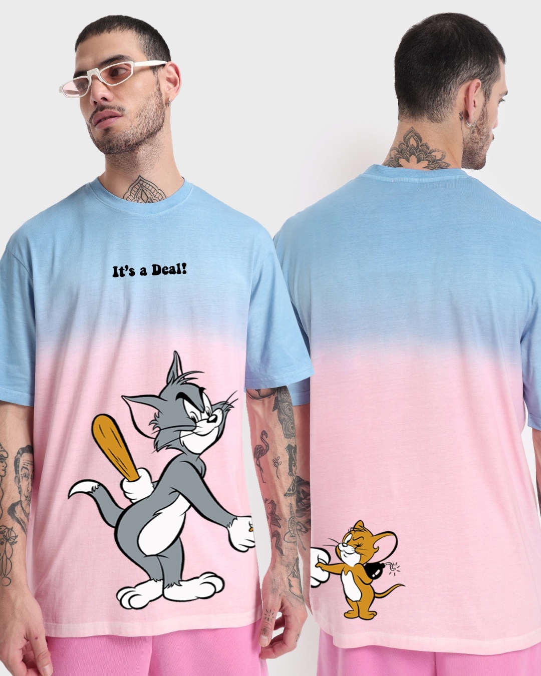 Men's Blue & Pink It's a Deal Graphic Printed Ombre Oversized T-shirt