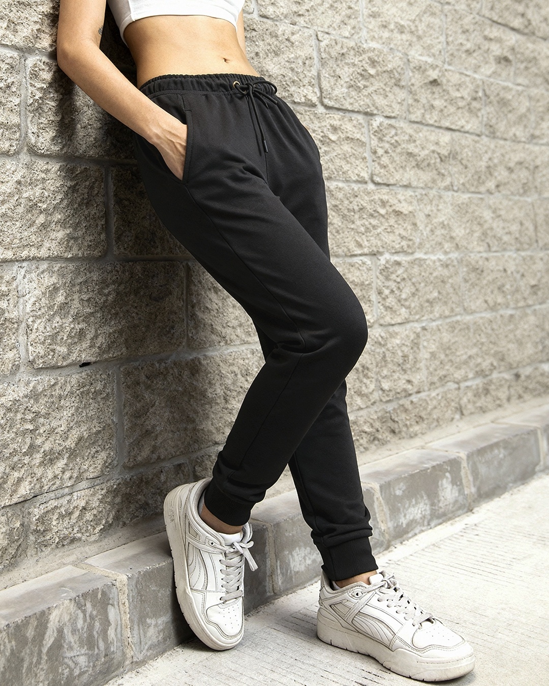 Women's Black Casual Slim Fit Joggers