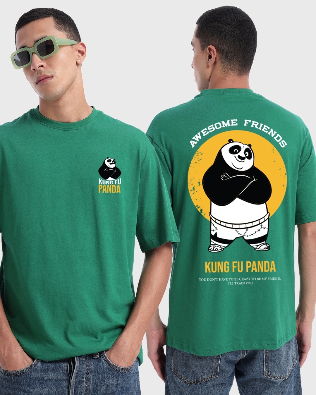 Men's Green Kung Fu Panda Graphic Printed Oversized T-shirt