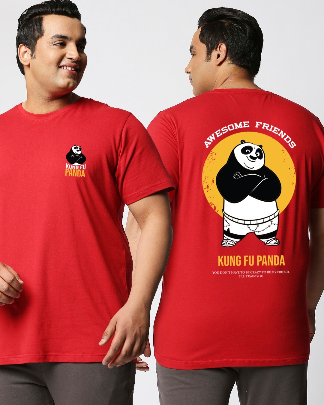 Men's Red Kung Fu Panda Graphic Printed Plus Size T-shirt