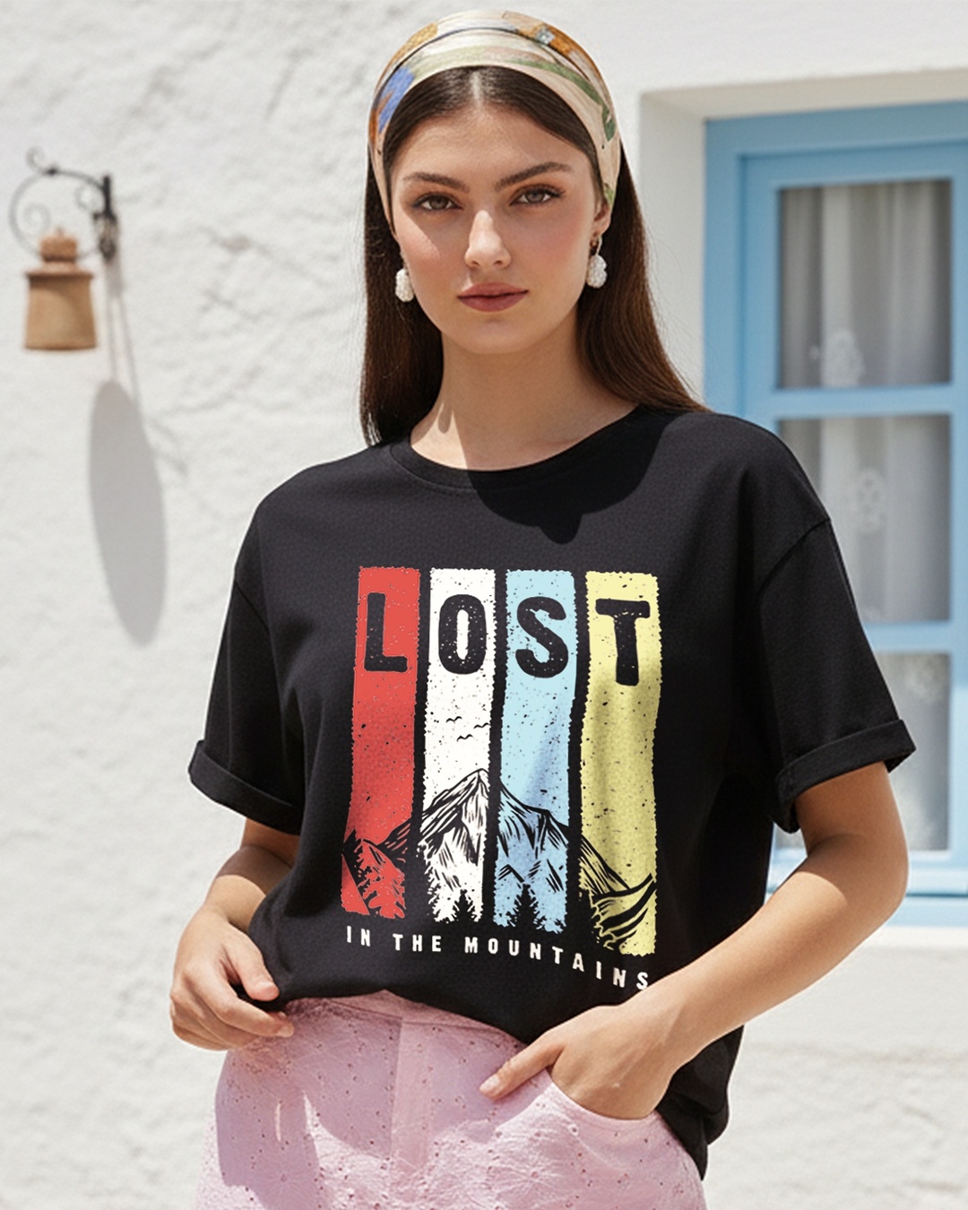 Women's Black Lost In The Mountains Boyfriend T-shirt