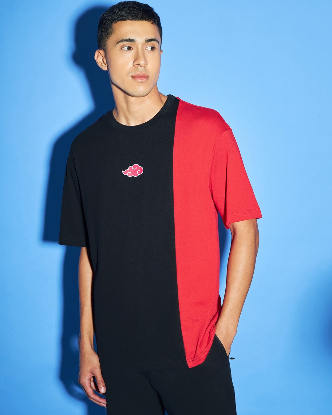 Men's Red & Black Rougue Ninja Color Block Oversized T-shirt